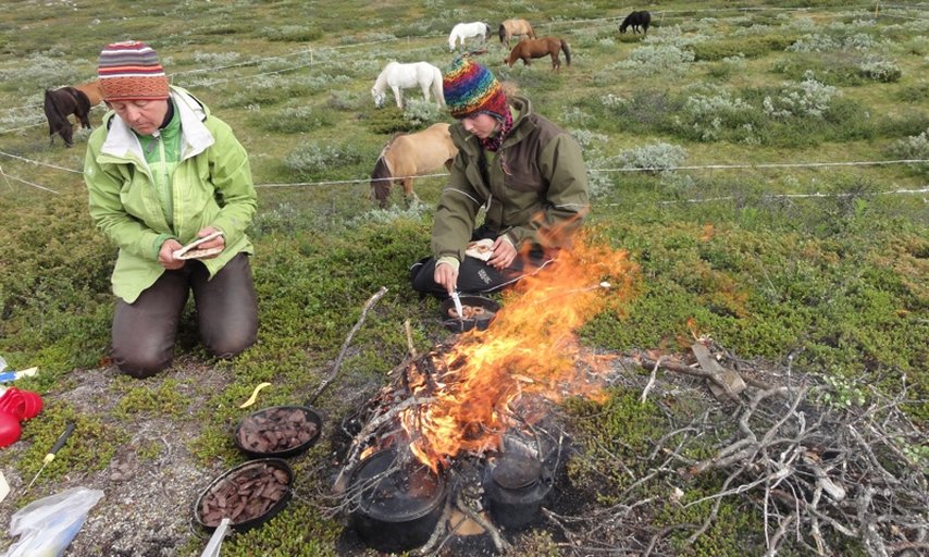 Vi startar den första riddagen på morgonen. Du tilldelas en häst som passar dig och din ridvana och vi går igenom turen, hästar och utrustning. Vi beger oss iväg på hästryggen ut i vår fantastiska fjällvärld. Till största delen rider vi i obanad terräng eller efter stigar, så vi får utnyttja islandshästens fenomenala förmåga att ta sig fram. Vi kan rida i olika tempon beroende på terräng. Vi rider på kalfjället, över myrar och genom skogen. Eftersom vi rör oss i fjällterräng får vi ta hänsyn till vädret och det kan det hända att vi måste ändra rutten pga vädret.