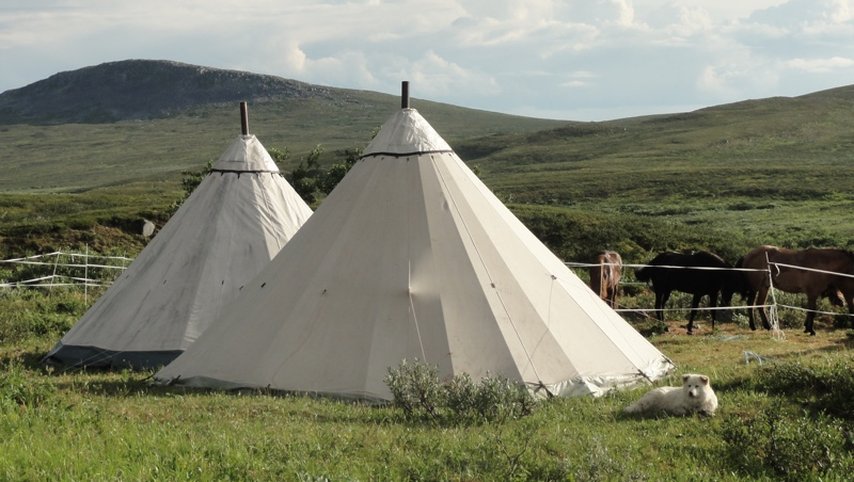 Övernattningen sker i tältkåta två nätter, där vi sover i sovsäck runt eldstaden, så det är bra om du prövat på att sova i tält innan turen. Varje dag stannar vi för lunch som tillagas över öppen eld. Maten består av lokala specialiteter som vilt och fisk som tillagas på traditionellt sätt över öppen eld. När vi kommer fram till övernattningsstället hjälps vi åt med hästarna och matlagningen. Vi förflyttar oss, hästarna och vår utrustning så under turen får du uppleva känslan av ett rörligt nomadliv. Vi har med oss packhäst som hjälper oss att bära, men alla ryttare packar sina personliga saker i sadelväska på den egna hästen. För att tvätta oss under de dagarna använder vi det klara och friska vattnet i fjällbäckarna.