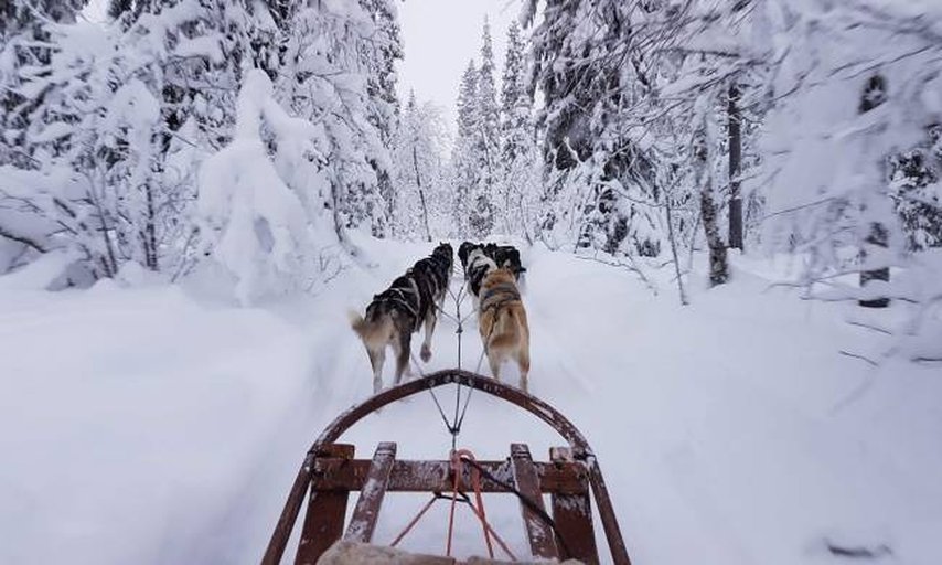 Du kör din egen släde som dras av 3-4 hundar och om du delar släde dras den av 4-6 hundar.