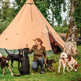 Träffa och gosa med våra 40 Alaskan Huskies på sommaren eller hösten. Lek med dem när de springer runt på gården och lär känna deras unika personligheter. Vi kommer att berätta mer om deras ras, Alaskan Husky och deras fantastiska förmågor. Se deras dagliga skötsel, inklusive matning, vattning, rengöring av kenneln och motion.