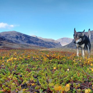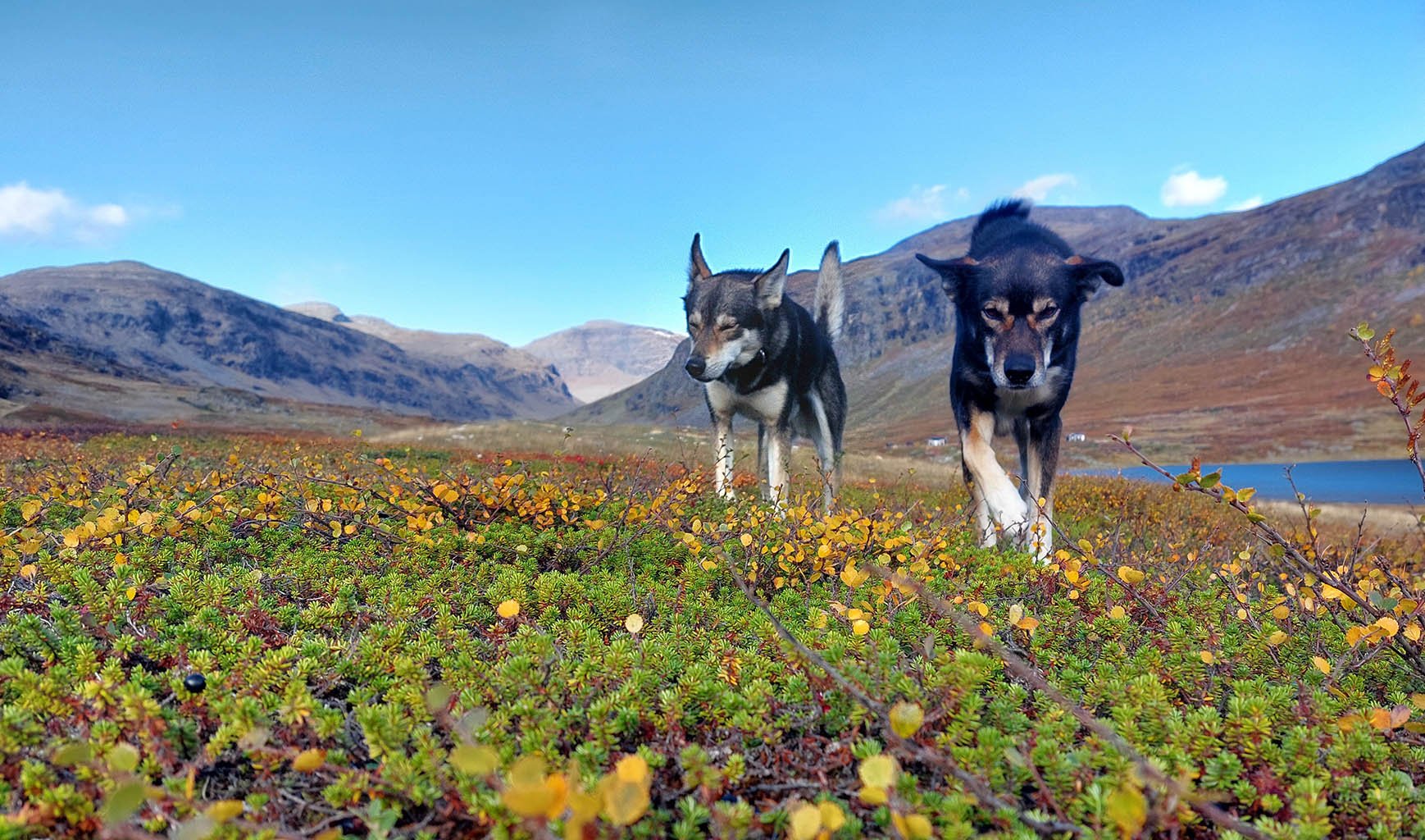 A calm hike through the valley with focus on our huskies. Here we walk with the help of our sled dogs, each guest being matched with a huskie that assists along the way. We follow the valley up to a beautiful viewpoint. The dogs carry treats in their packs, which you’ll get to give them as a reward for their teamwork. Back at the kennel, you’ll have the chance to meet our 60 friendly sled dogs.