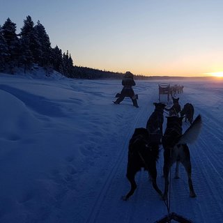 Welcome to join us on a Northern Lights tour with dog sledding. We will pick you up at 17.30 in Kiruna C and take you to our base in Laxforsen, outside Kiruna, not far from Jukkasjärvi. After putting on warm clothes and shoes, you are welcome to help our guides prepare the dog sled for the tour.