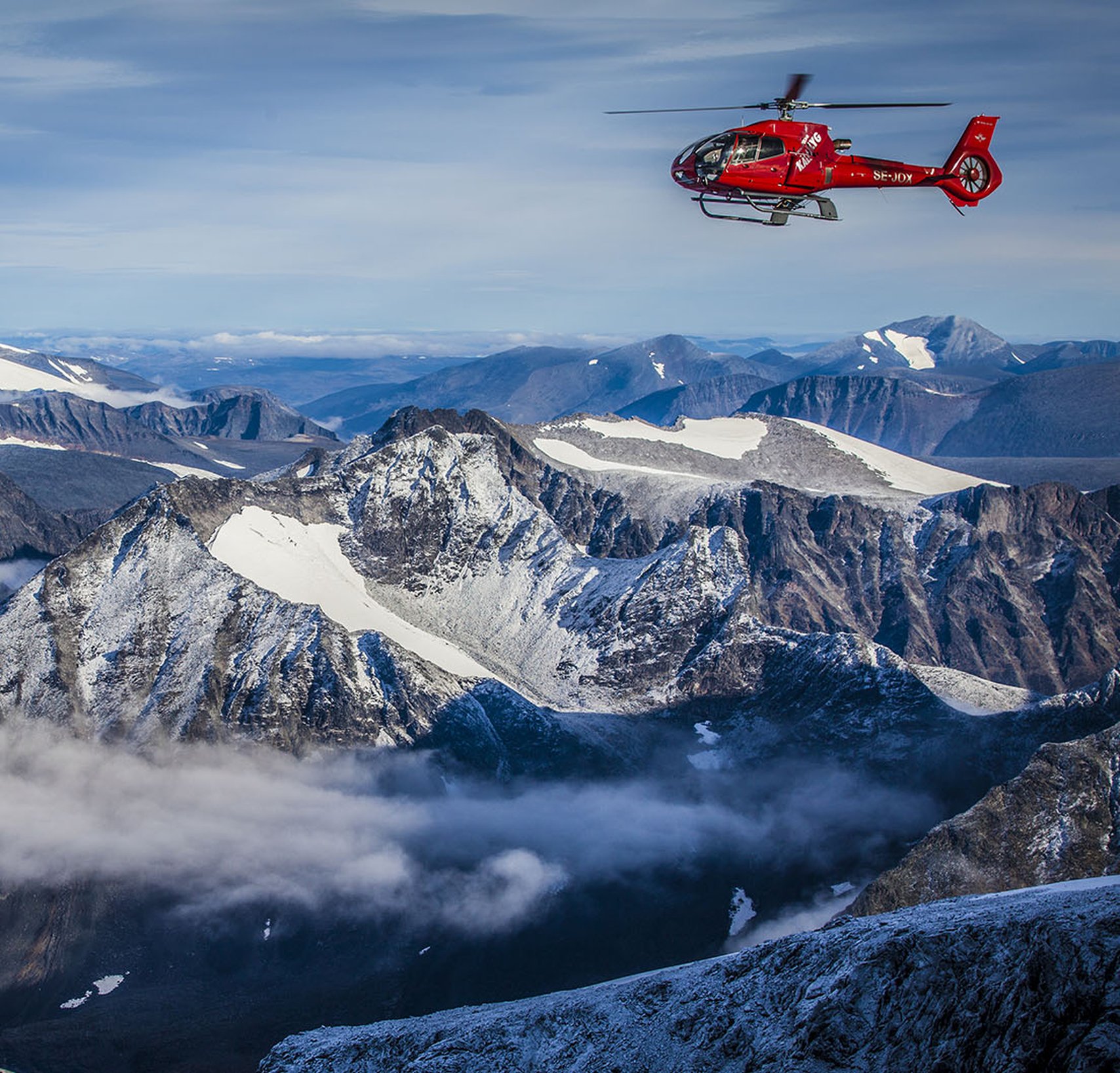 Niehku Mountain Villa takes you by helicopter to one of the country's most alpine areas with steep mountains and mighty glaciers, as if made for off-piste skiing. With over 5,000 square kilometers of ski terrain and more than 60 different mountain peaks, everything from relaxed skiing to the most challenging for true professionals is offered.