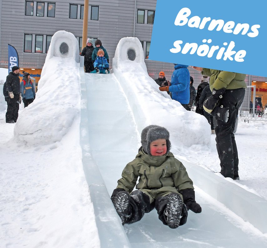 Under snöfestivalen får de minsta besökarna chansen att åka hundspann, se barnteater, njuta av musikuppträdanden, prova ponnyridning, dans, lekar och självklart vår otroligt roliga snölekplats. Varje år byggs en unik lekplats i samarbete med två av Sveriges ledande snölekplatsskapare. Temat på lekplatsen varierar från år till år, men det är alltid otroligt roligt! Snölekplatsen är helt gratis för alla besökare.